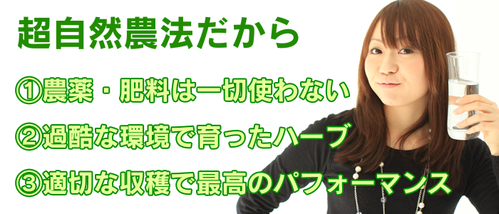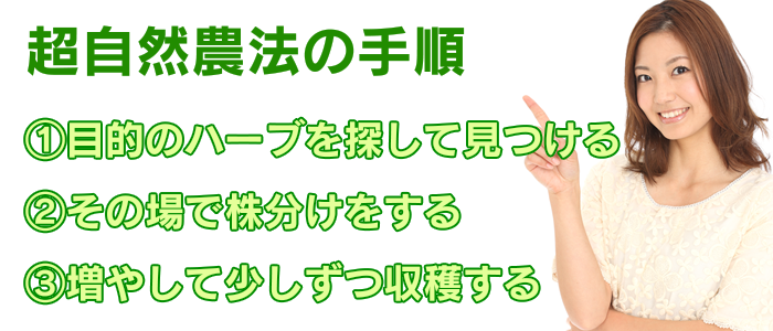 マイハーブプログラムの特徴の一つ、完全無農薬・原種メディカルハーブは、「超自然農法」という方法で作られています。